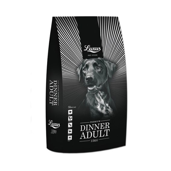 Canun Luxus Dinner Adult - pełnoporcjowa karma dla dorosłych psów wszystkich ras o umiarkowanej aktywności fizycznej. Bez GMO, z dużą zawartością mięsa i minerałami wspierającymi zdrowie każdego dnia.