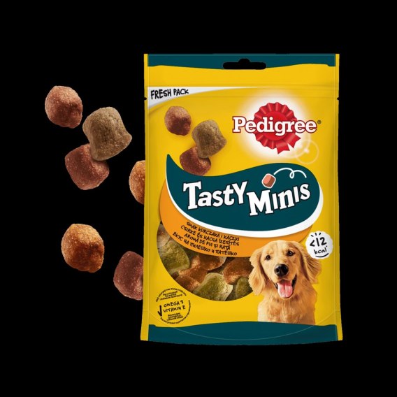 Pedigree Tasty Bites Chewy Cubes to przysmaki w formie kosteczek do żucia. Sprawdzą się idealnie w pozytywnym motywowaniu psa podczas szkolenia lub jako nagroda za jego dobre sprawowanie. Skład Pedigree Tasty Bites Chewy Cubes sprawia, że przysmaki te są świetnym uzupełnieniem codziennej diety. Zawarte w nich witaminy, minerały oraz kwasy tłuszczowe Omega-3, pomogą w utrzymaniu zdrowia i witalności Twojego pupila. Produkt to doskonałe wzbogacenie diety psa w formie miękkich, mięsnych przysmaków do codziennego stosowania. Przysmak wzbogacone o witaminy i minerały, aby pomóc utrzymać i wzmocnić naturalną odporność psa, z zawartością kwasów Omega 3, aby utrzymać psa w dobrej formie przez całe życie oraz z wapniem i fosforem dla zdrowych zębów i mocnych kości