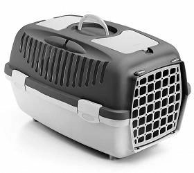 Transporter z plastikowymi drzwiczkami dla małych psów i kotów do 12 kg, w kolorze szarym o wymiarach 61cm x 40cm x 38cm. Rozmiar 3.